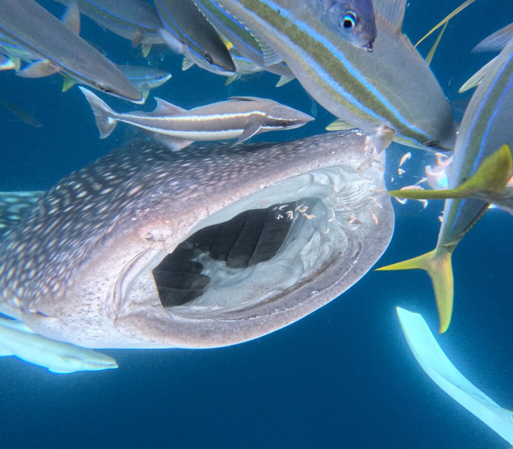 シュノーケリングなので、ジンベイザメを上からみるそうです。ダイビングだとタッチできる近さまで寄れるそう!!