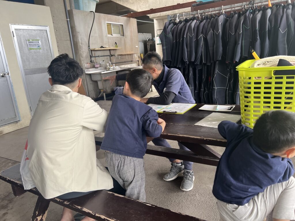 まず、集合場所に集合して、書類記入とレクチャー。(ゴーグルに水が入った時の対処法など)